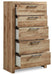 Inspired by natural beauty, refined to perfection. This chest of drawers brings cozy outdoor vibes to your bedroom with its warm and inviting golden rustic finish. Handles in an antiqued gunmetal hue adorn the five drawers on its framed front, adding an industrial touch to the simple, streamlined design.