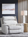 Smart, clean and ultra modern, this power recliner is utterly in vogue. You'll love its indulgent cushions and contemporary bustle back styling. The sumptuous fabric, accentuated with contrasting welting, easily blends with your decor. And with reclining at the press of a button, this piece proves chic design and superb comfort go hand in hand.